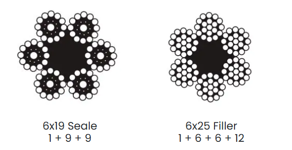 - Classe: 6x19: 6 pernas com 15 a 26 arames por perna.